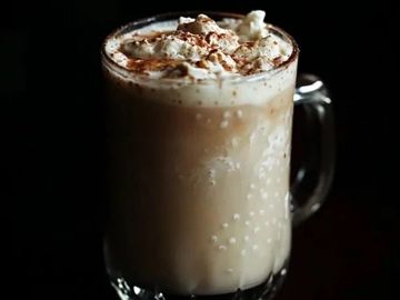 A rich, sweet, spiced non-alcoholic beverage made from coconut, condensed milk, rum, and spices (nutmeg, cinnamon, vanilla).