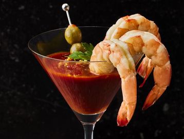 Cooked shrimp served with a tangy cocktail sauce,Olives, horseradish, lemon juice, and Worcestershire sauce,